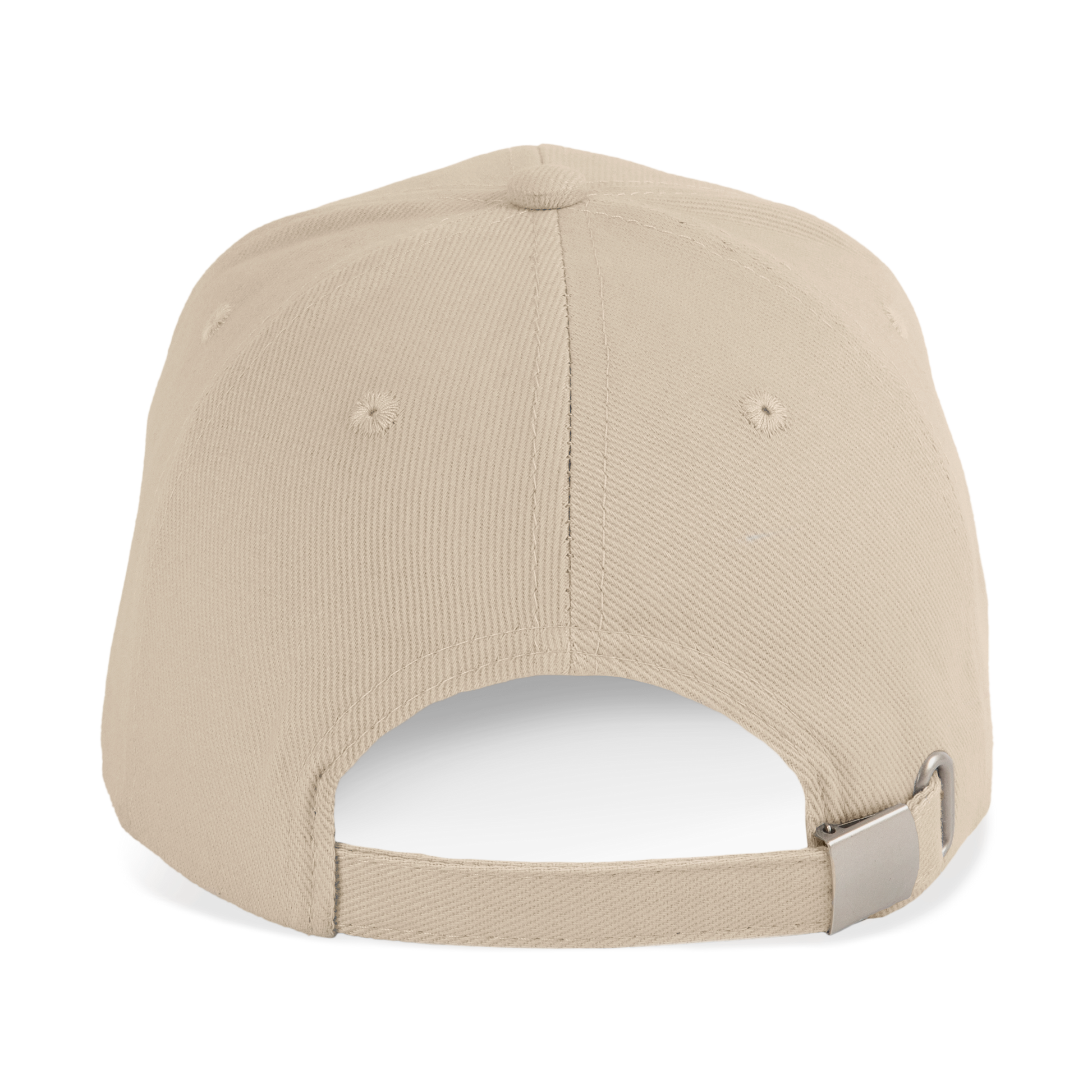 100% coton biologique. Casquette 6 panneaux. Fermeture à boucle métallique réglable.