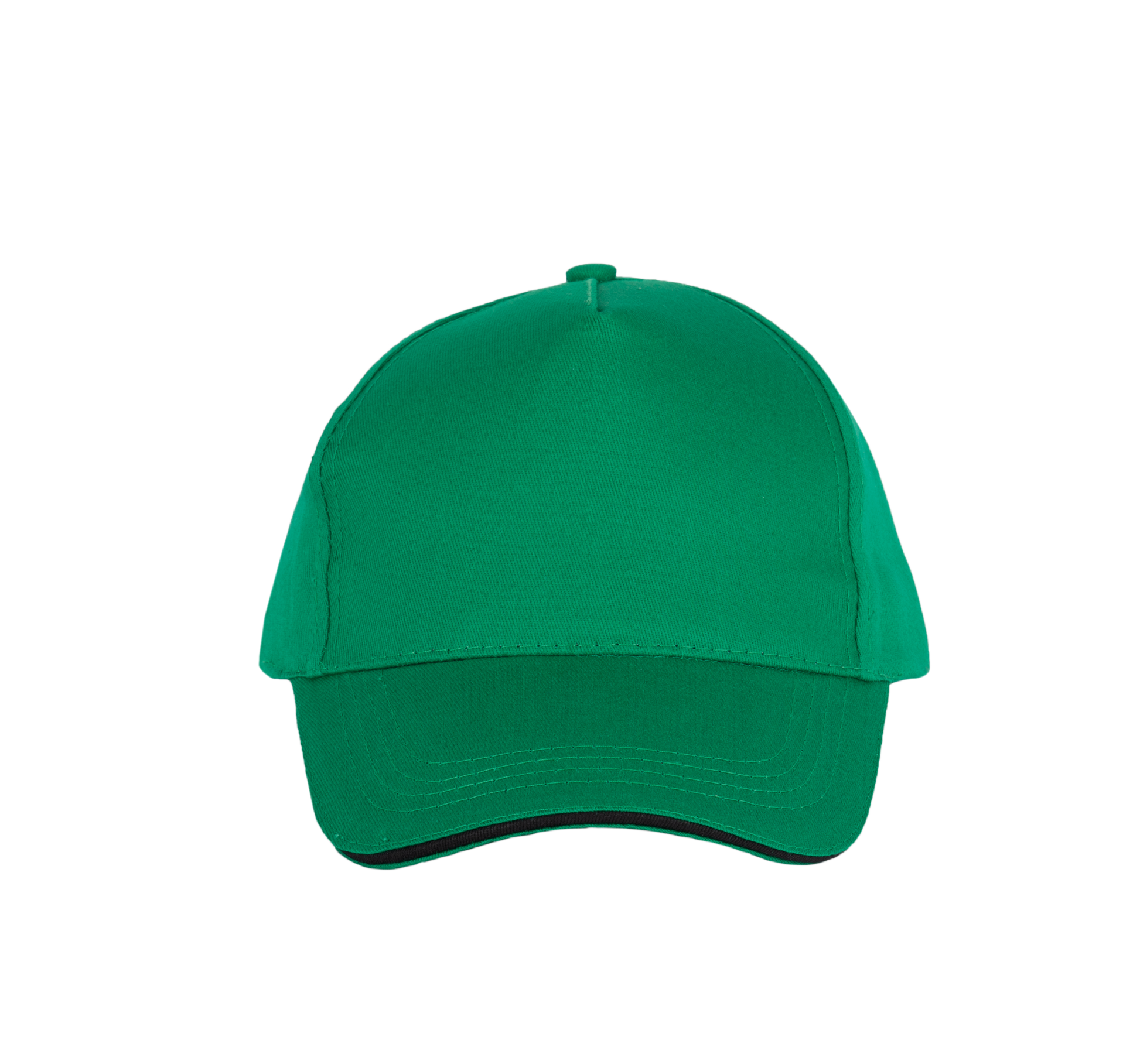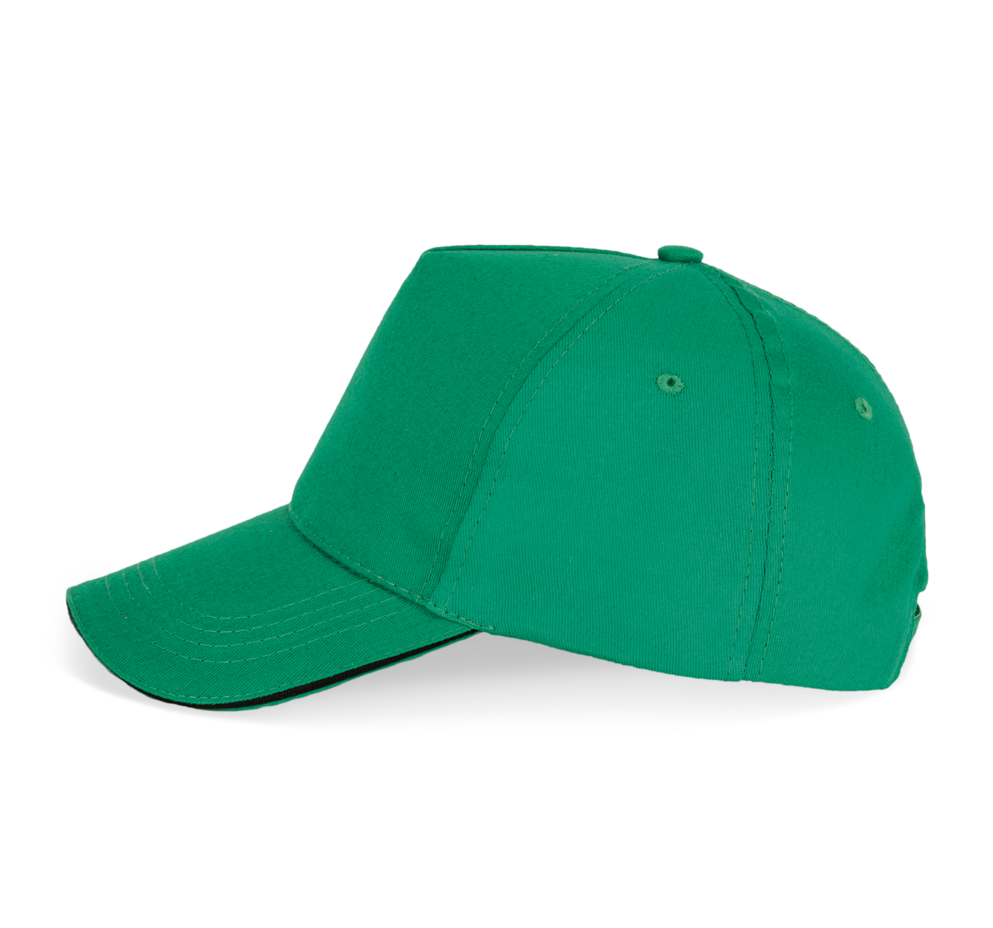 100% coton sergé. Casquette 5 panneaux avec sandwich contrasté, bande de transpiration en coton. Fermeture réglable avec bande auto-agrippante.