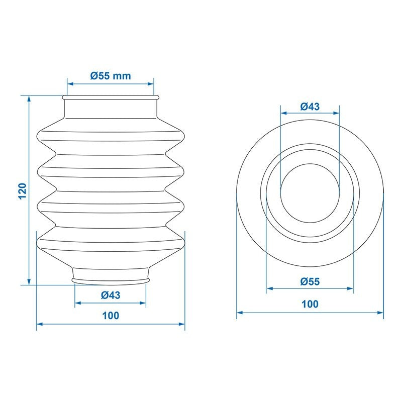 Soufflet pour commande de frein 45/60 L=150 convient à BPW ZAF 1.0-1